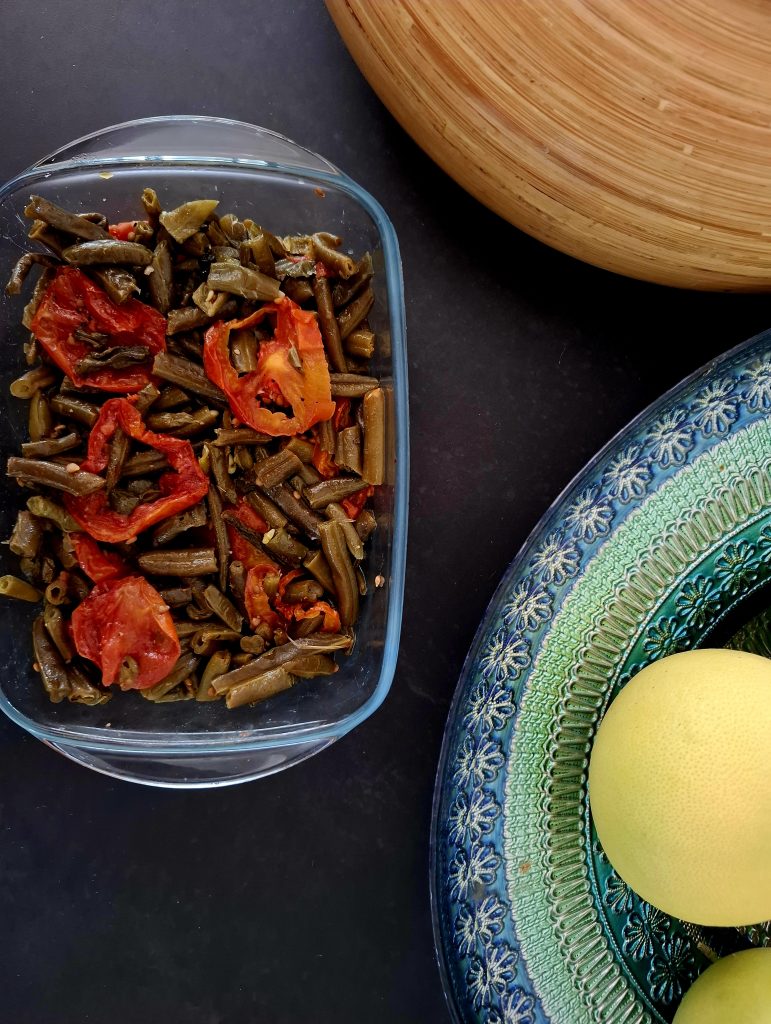 אנטי פסטי שעועית ירוקה ועגבניות.